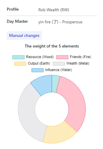- Elemental BalanceIdeally, the five elements should be equally present in the Destiny Chart. An excess or deficiency of any can lead to effects that cannot be ignored.