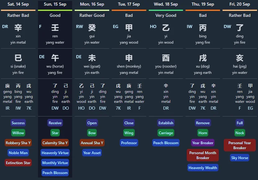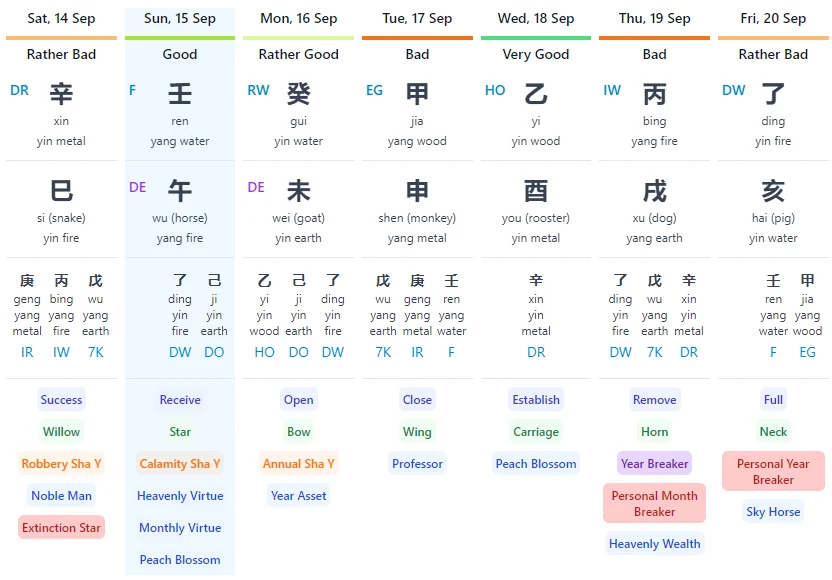 - Ze Ri Dangerous StarsBest to avoid days with these stars for important activities.